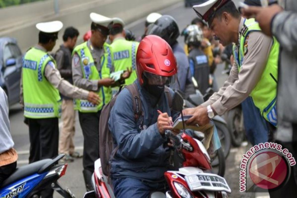 Polisi menilang ratusan kendaraan yang melanggar lalu lintas, kebanyakan pengendara yang melanggar itu tidak menggunakan helm dan menggunakan kendaraan roda empat tidak sesuai dengan peruntukannya.