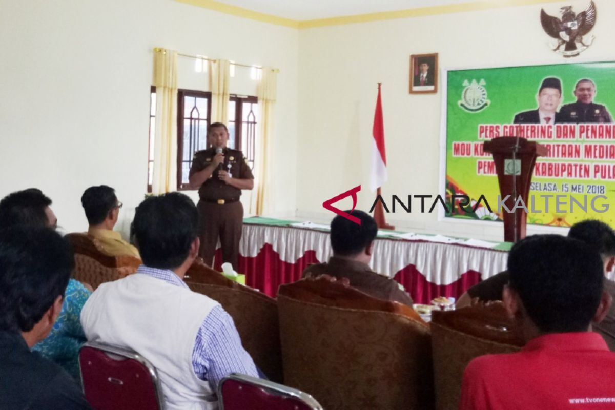 Kepala Kejaksaan Negeri Pulang Pisau, Triono Rahyudi dalam Pers Gethering dan Penandatanganan MoU kontrak pemberitaan dengan pemerintah setempat bersama sejumlah pimpinan media massa. (Foto Antara Kalteng/Adi Waskito)