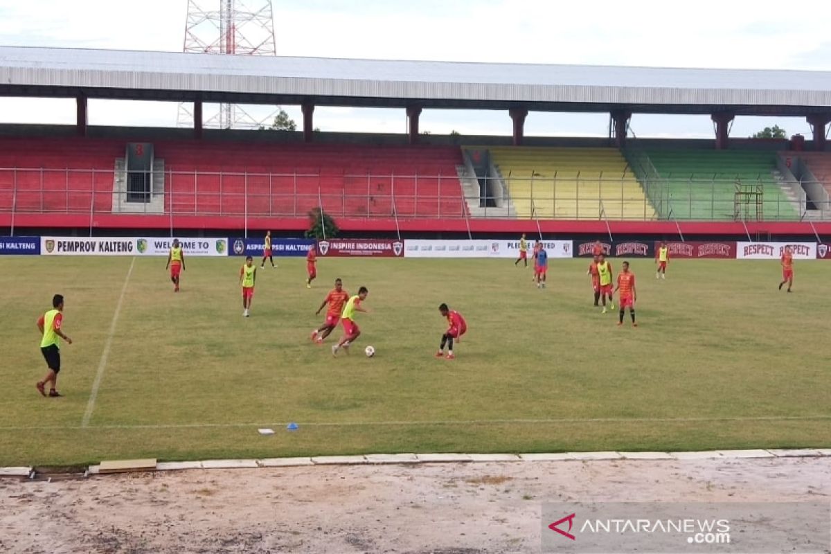 Pemain Kalteng Putra Saat melaksanakan latihan di Stadion Tuah Pahoe Kota Palangka Raya, Provinsi Kalimantan Tengah beberapa waktu lalu. ANTARA/Adi Wibowo