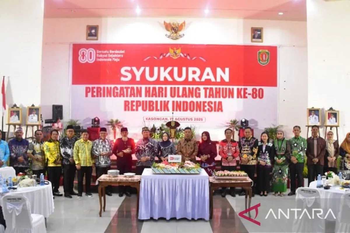 Kasongan (ANTARA) - Pemerintah Kabupaten (Pemkab) Katingan menutup rangkaian peringatan HUT ke-80 Kemerdekaan Republik Indonesia dengan malam syukuran yang penuh semarak di Gedung Salawah Kasongan.