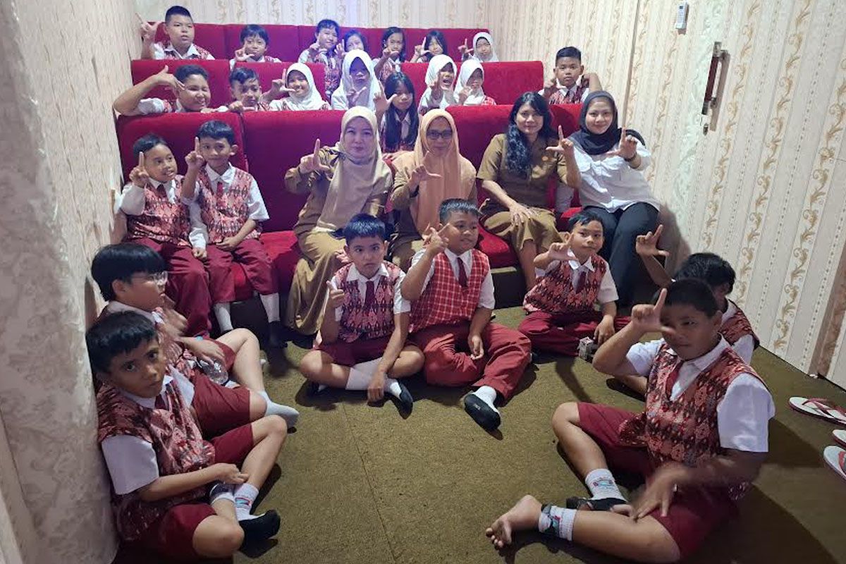 Dia bercerita, para siswa tampak antusias sejak awal memasuki area Disarpustaka Kapuas. Bahkan, dengan penuh rasa ingin tahu, para siswa diarahkan menuju studio mini, yang memang disiapkan sebagai sarana pemutaran film pendidikan dan budaya. Di mana film yang ditayangkan mengangkat tema pengetahuan umum, pentingnya menjaga lingkungan, serta nilai-nilai moral yang sesuai dengan usia sekolah dasar.