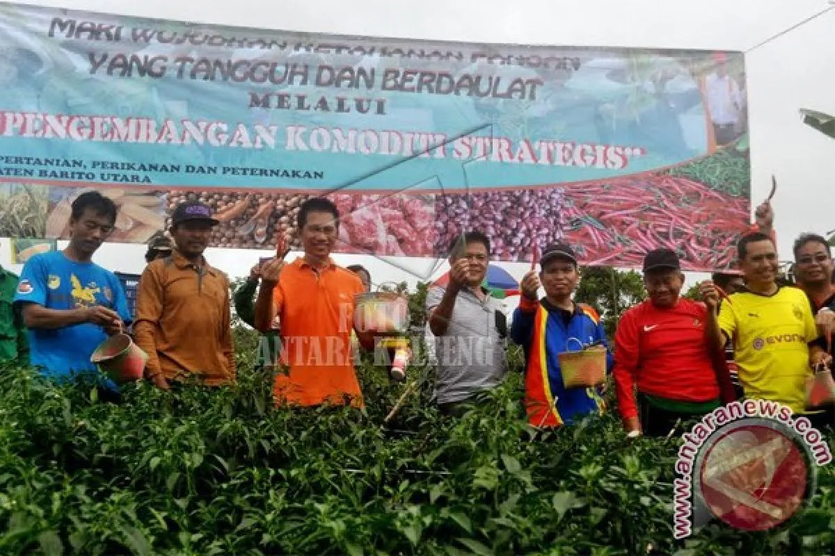 "Untuk wilayah Kabupaten Barito Utara dilakukan uji coba seluas delapan hektare yakni di Rapen ini, Wonorejo, Desa Rimba Sari, Desa Trinsing yang masing-masing lahan untuk tanaman cabe ini dua hektar," katanya.