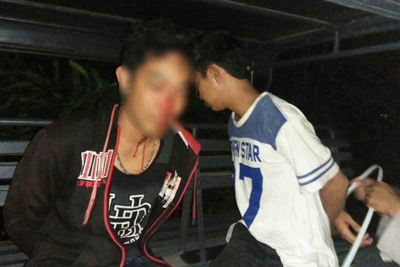 Apes! 2 pencuri helm dan handphone diamuk massa hingga lebam