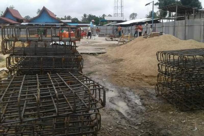 Sejumlah pekerja mulai membangun pasar mingguan berkonstruksi baja di Kelurahan Tumpung Laung Kecamatan Montallat, Rabu.(Ist)