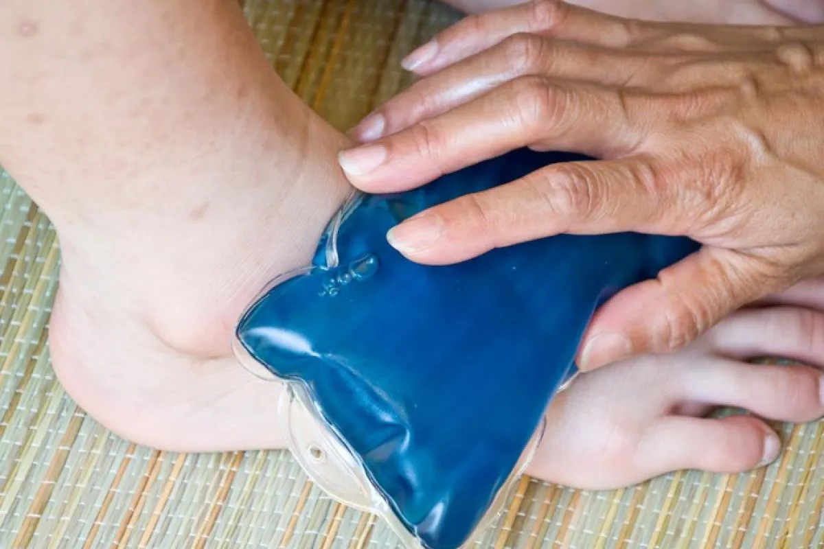 Bungkus es dengan handuk atau kain dan taruhlah ke area yang terkena. Ingat, jangan gunakan es langsung ke kulit, karena dapat menyebabkan cedera lebih lanjut.