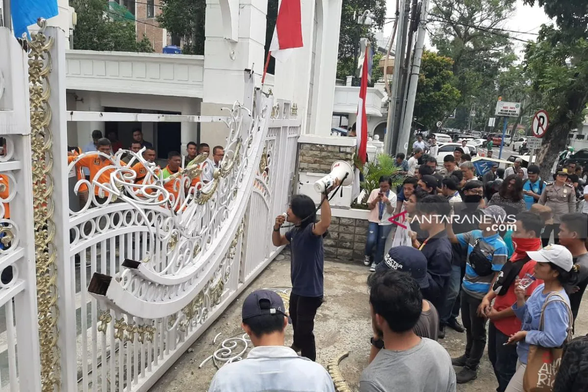 Medan (ANTARA) - Pengunjuk rasa yang mengatasnamakan Gerakan Mahasiswa Kristen Indonesia (GMKI) merusak pagar di depan kantor Gubernur Sumatera Utara (Sumut).