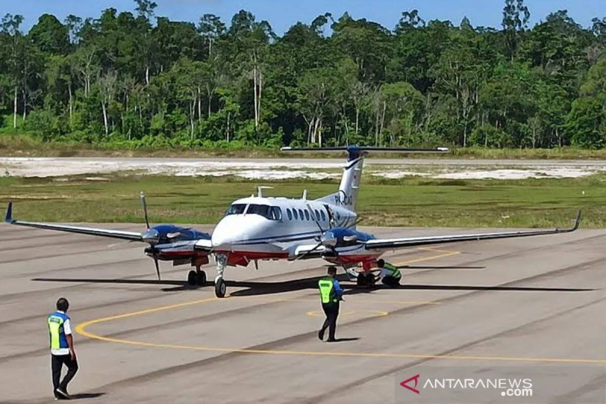Muara Teweh (ANTARA) - Pesawat Beechcraft SKA B 350i mengangkut tim dari Direktorat Jenderal Perhubungan Udara Kementerian Perhubungan (Kemenhub) yang melakukan kalibarasi alat navigasi untuk pendaratan pesawat (PAPI) dan pengujian peraturan penerbangan instrumen atau IFR mendarat di Bandar Udara Haji Muhammad Sidik di Desa Trinsing, Kecamatan Teweh Selatan Kabupaten Barito Utara, Kalimantan Tengah.