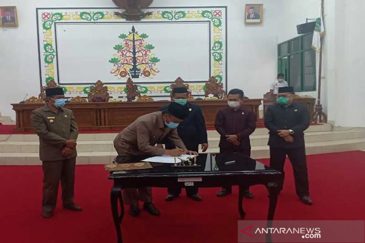 Sukamara (ANTARA) - Bupati Sukamara, Provinsi Kalimantan Tengah, Windu Subagio bersama dengan Ketua DPRD Sukamara Deni Khaidir menandatangani berita acara persetujuan bersama Eksekutif dan Legislatif mengenai rancangan peraturan daerah APBD Kabupaten setempat untuk tahun anggaran 2021, Rabu.