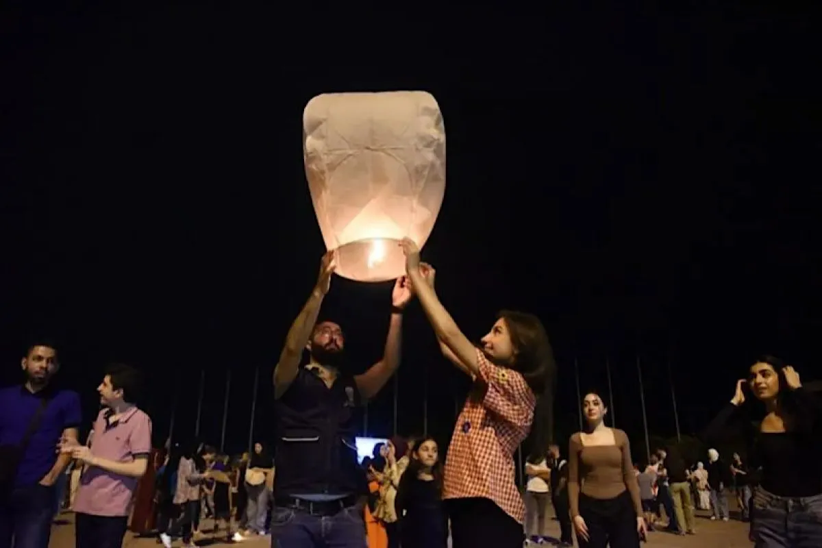 Anak-anak bermain ayunan pada hari pertama Hari Raya Idul Adha di Beirut, Lebanon, pada 28 Juni 2023. (Xinhua/Bilal Jawich)