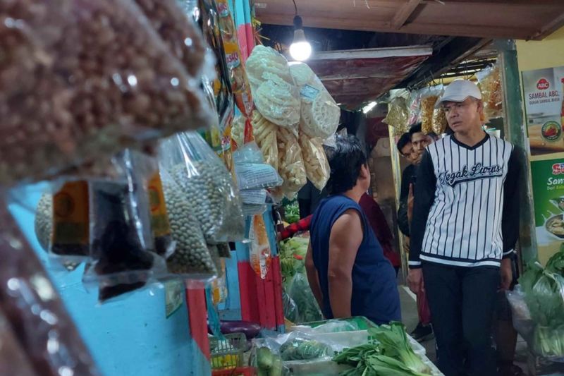 Surabaya (ANTARA) - Bakal Calon Presiden (Capres) RI Ganjar Pranowo mendapatkan doa dari para pedagang saat singgah di Pasar Darmo Permai Utara, Kota Surabaya, Jawa Timur, Sabtu.