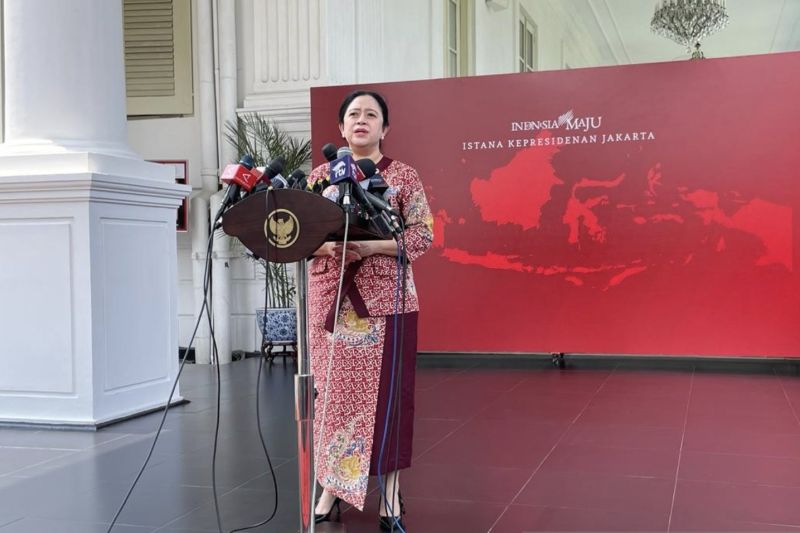 Ketua DPR RI Puan Maharani saat menyampaikan keterangan kepada wartawan di Istana Kepresidenan Jakarta, Senin (20/11/2023). (ANTARA/Yashinta Difa)