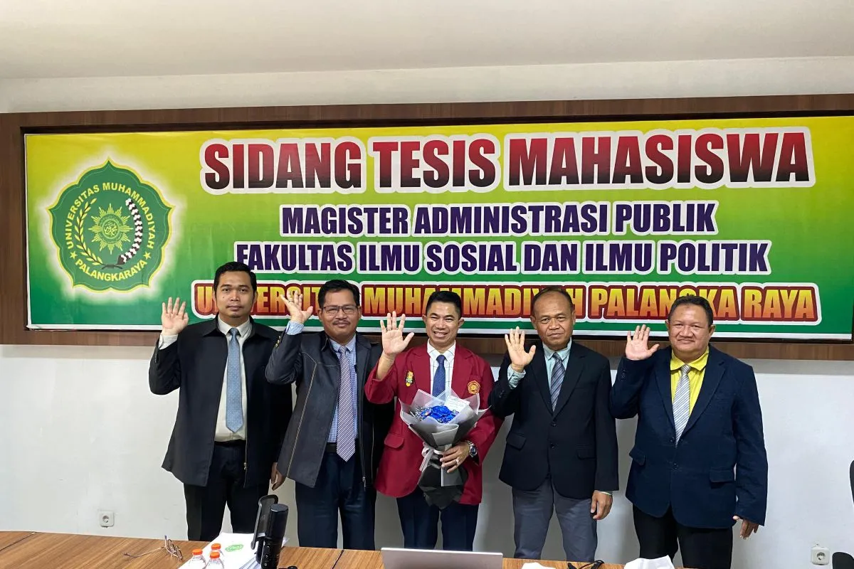 Palangka Raya (ANTARA) - Wakil Ketua II DPRD Provinsi Kalimantan Tengah Junaidi, telah menyelesaikan sidang tesis Magister Administrasi Publik (MAP) Fakultas Ilmu Sosial dan Ilmu Politik (Fisipol) Universitas Muhammadiyah Palangkaraya (UMPR) di ruang sidang lantai 3 Fisipol, Rabu (25/6).