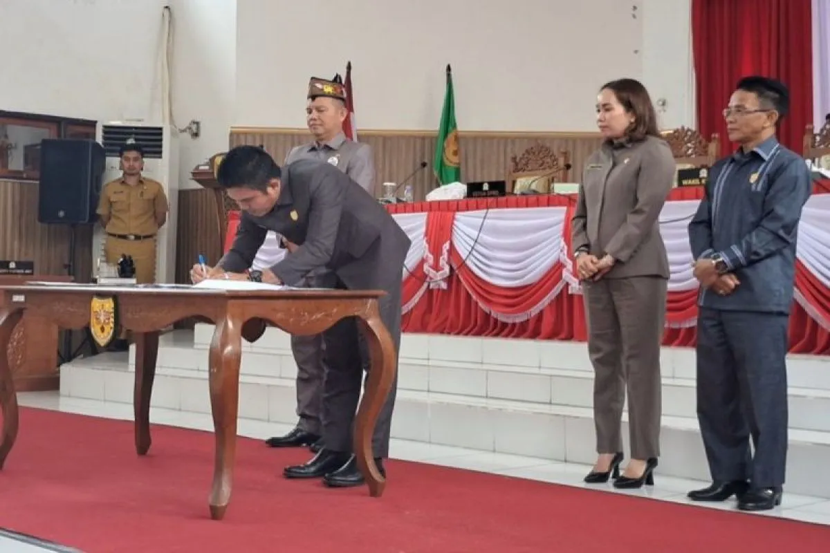 Kesepakatan bersama ditandai dengan penandatanganan berita acara yang dilakukan oleh Bupati Jaya S Monong, Ketua DPRD Binartha, Wakil Ketua I Nomi Aprilia, dan Wakil Ketua II Espriadi.