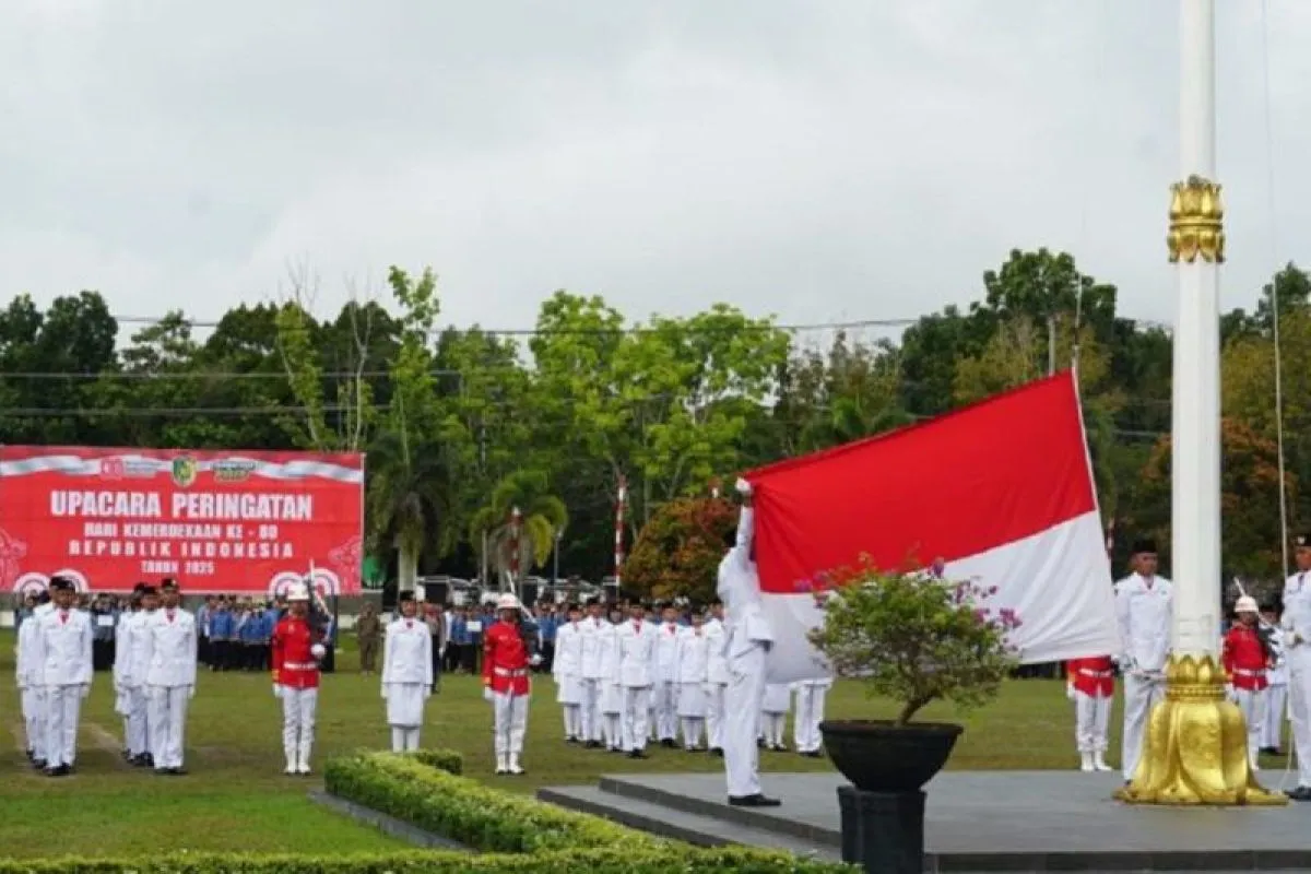 Palangka Raya (ANTARA) - Pengibaran Bendera Merah Putih oleh Pasukan Pengibar Bendera Pusaka (Paskibraka) Kota Palangka Raya menjadi momen paling berkesan dalam Upacara Peringatan HUT ke-80 Kemerdekaan Republik Indonesia, Minggu (17/8/2025). Upacara ini digelar secara khidmat di Halaman Kantor Wali Kota Palangka Raya.