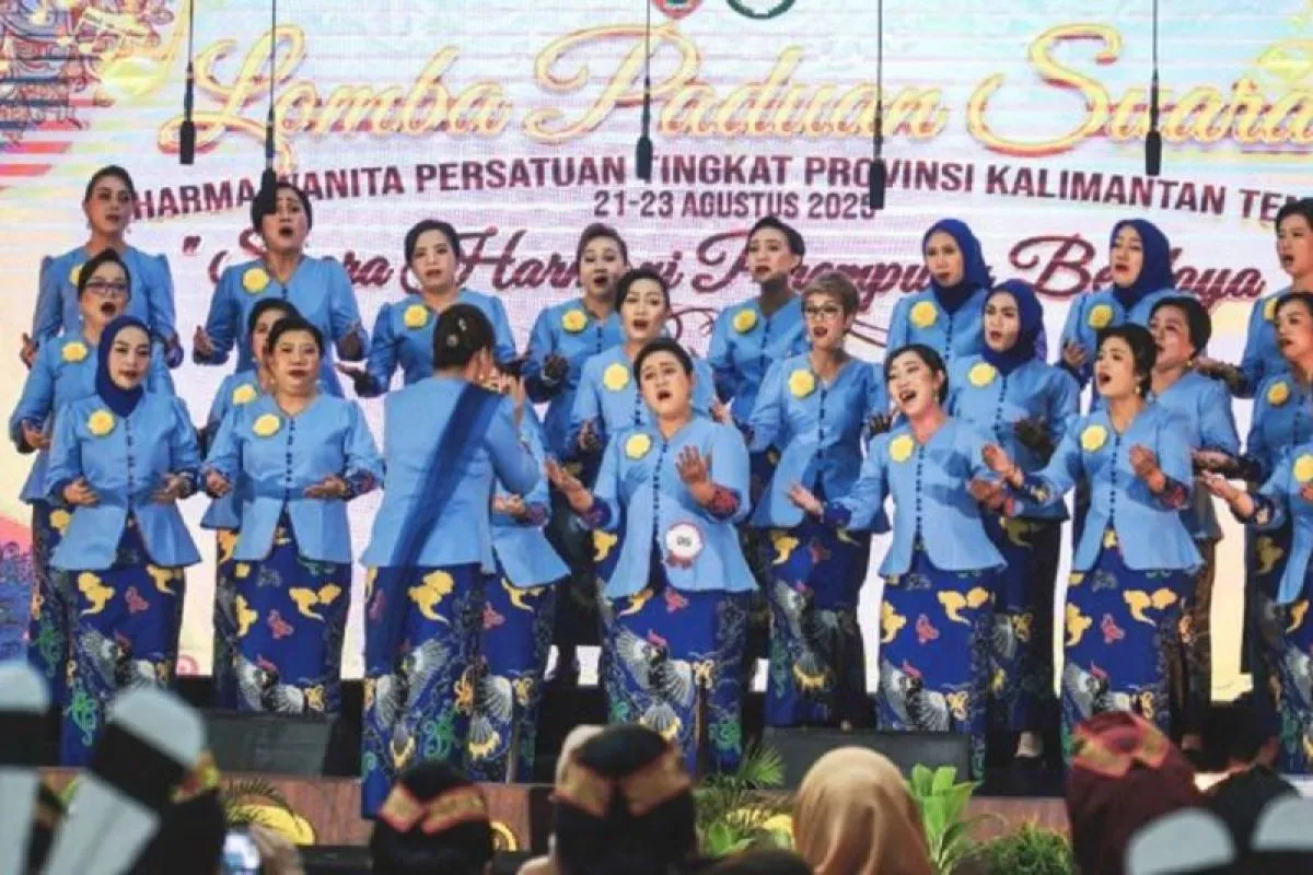Palangka Raya (ANTARA) - Dharma Wanita Persatuan (DWP) Kota Palangka Raya menunjukkan kemampuannya di hadapan dewan juri dan penonton yang hadir pada lomba paduan suara DWP Tingkat Provinsi Kalimantan Tengah di Aula Kantor Bapperida Provinsi Kalteng, Jumat (22/08/2025).