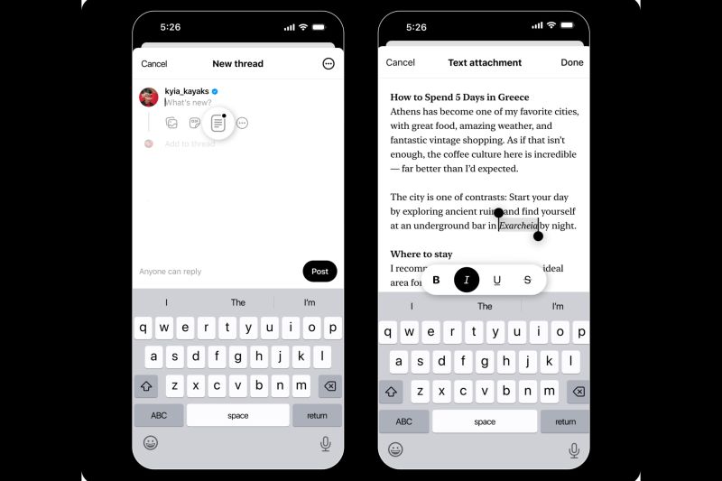 Tampilan fitur baru Threads untuk menambahkan konten teks hingga 10,000 karakter. (ANTARA/blog Meta)
