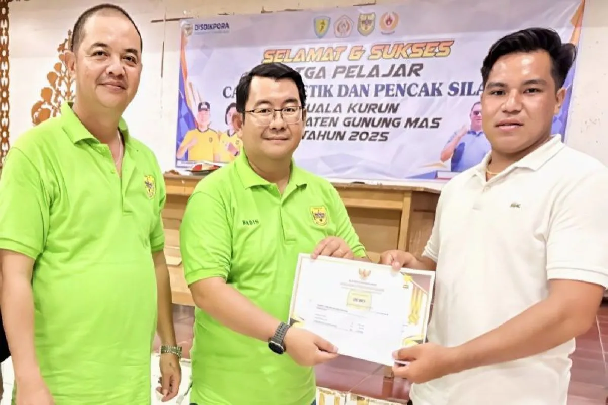 “Untuk pencak silat putra, juara 1 kelas A 39-43 kilogram adalah Mohammat Riski dari SMPN 1 Kurun, juara 1 kelas C 47-51 kg Reza Saputra dari SMAN 1 Tewah, juara 1 kelas E 55-59 kg Said Zaidan dari SMAN 1 Kuala Kurun, juara 1 kelas G 63-67 kg Ahkmad Rizky Maulana dari SMAN 1 Tewah, dan juara 1 seni tunggal Rehan dari SMAN 1 Kuala Kurun,” ungkapnya.