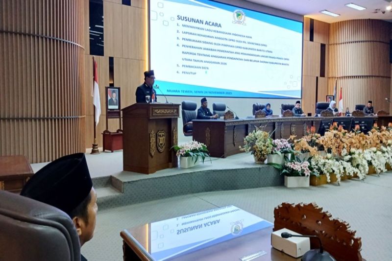 Muara Teweh (ANTARA) - Bupati Barito Utara Shalahuddin menyampaikan jawaban atas pemandangan umum fraksi-fraksi DPRD setempat terhadap rancangan peraturan daerah tentang Anggaran Pendapatan dan Belanja Daerah (APBD) Tahun Anggaran 2026.