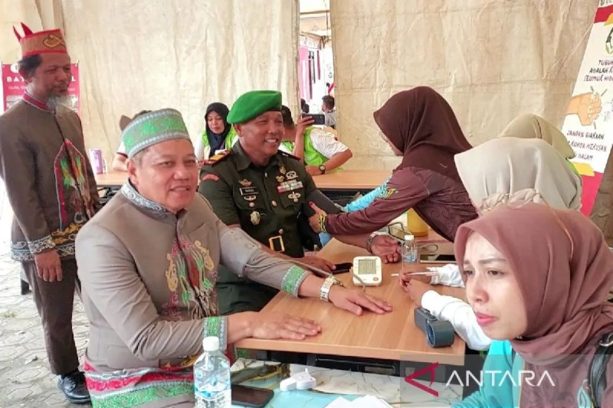 Kegiatan ini juga disertai pemberian layanan cek kesehatan gratis di stan yang sudah disiapkan. Umar bersama pejabat lainnya juga ikut memeriksakan kondisi kesehatan mereka.