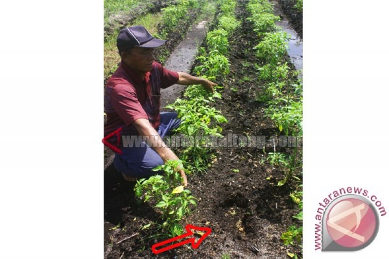 Bahruni, warga Jalan Banitan Raya menunjukkan jejak telapak kaki misterius di kebun cabai milik warga di Jalan Tanah Mas Kecamatan Baamang, Sampit, Kabupaten Kotawaringin Timur, Kalimantan Tengah, Minggu (27/4/2014). Masyarakat penasaran melihat jejak telapak kaki itu cukup aneh karena jarak langkah sekitar 1,5 meter dan hanya terdapat di satu jalur. (FOTO ANTARA Kalteng/Norjani)
