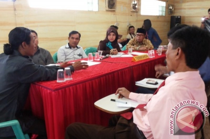 Tim sukses pasangan bakal calon bupati/wakil bupati Muhammad Rudini-H Supriadi (deret kanan), melakukan musyawarah dengan pihak Komisi Pemilihan Umum (KPU)Kabupaten Kotawaringin Timur,Kalimantan Tengah dalam menyelesaikan sengketa Pilkada Minggu (9/8). Tim sukses pasangan bakal calon tidak terima karena berkas pendaftaran dikembalikan oleh KPU. Foto Antara Kalteng/Untung Setiawan