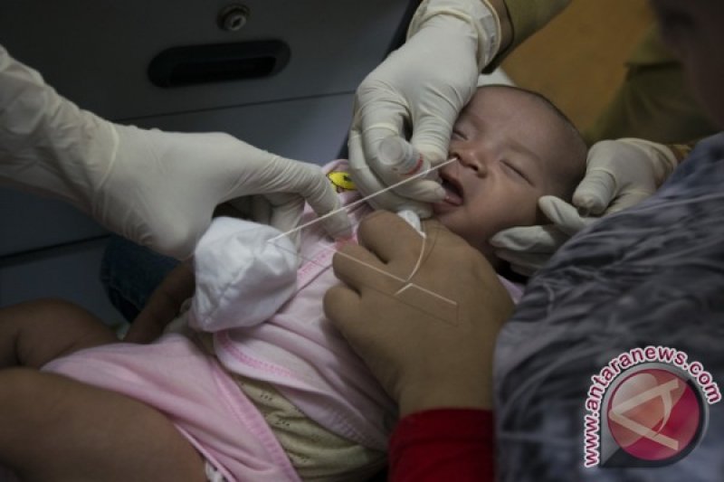 Bayi mendapatkan vaksin polio saat imunisasi di Puskesmas Kecamatan Sawah Besar, Jakarta, Selasa (28/6). Pemerintah menjamin pemberian vaksin di Posyandu, Puskesmas, dan Rumah Sakit Pemerintah menggunakan vaksin asli. ANTARA FOTO/Rosa Panggabean