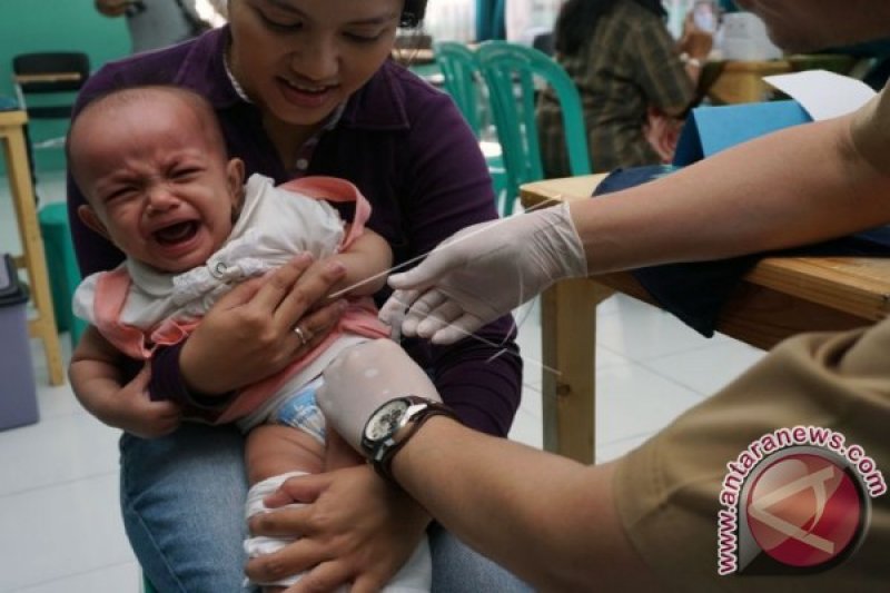 Seorang anak balita menjalani vaksinasi ulang di Puskesmas Ciledug, Tangerang, Banten, Selasa (26/7). Ratusan korban vaksin palsu Rumah Sakit Ibu dan Anak Mutiara Bunda Tangerang menjalani vaksinasi ulang guna memastikan kesehatannya. ANTARA FOTO/Lucky R