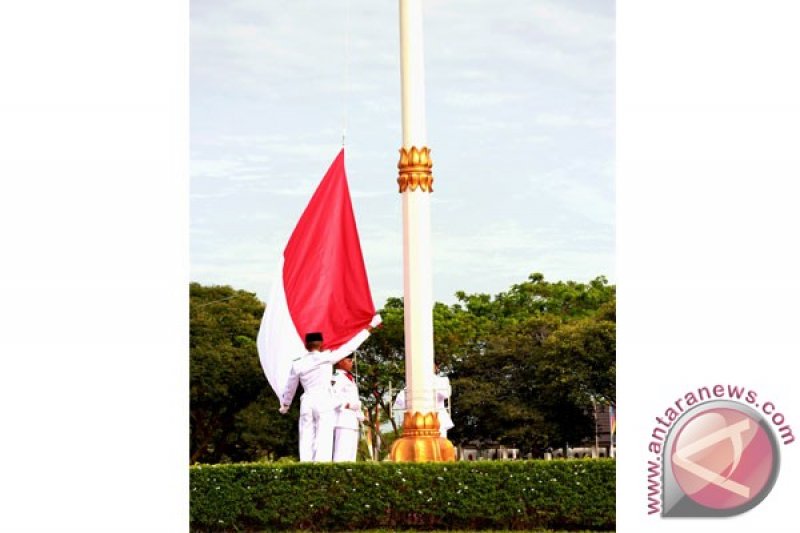 Pasukan Pengibar Bendera Pusaka (Paskibraka) melaksanakan Upacara Pengibaran Bendera Merah Putih dalam rangkaian upacara peringatan detik-detik Proklamasi Kemerdekaan ke-71 RI di Halaman Kantor Pemerintah Kota Palangka Raya, Kalimantan Tengah, Rabu (17/8). Rakyat Indonesia memperingati hari Kemerdekaan ke-71 RI. (Foto Antara Kalteng/Rendhik Andika)