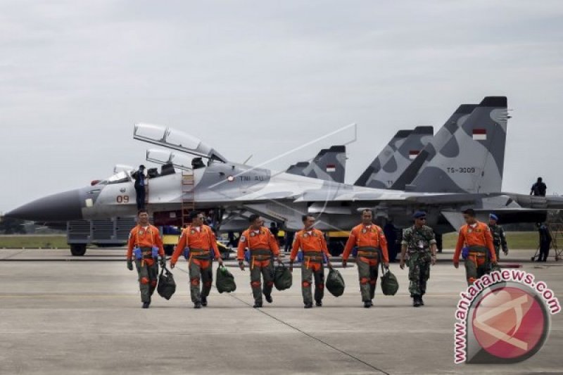 Dua pesawat tempur Sukhoi SU-27/30 terbang rendah mengeluarkan suara menggelegar disusul pesawat-pesawat tempur lainnya di Lanud Ranai, Natuna, Kepulauan Riau. Dalam latihan tempur ini ditampilkan demonstrasi kemampuan serangan udara yang dikemas dalam bentuk manuver lapangan di Lanud Ranai yang merupakan perwujudan profesionalisme perorangan, satuan maupun Komando Utama (Kotama) dalam sebuah operasi gabungan yang dilaksanakan oleh Komando Tugas Udara Gabungan (Kogasudgab) yang melibatkan jajaran Komando Operasi TNI AU (Koopsau) I, Koopsau II, Korps Pasukan Khas TNI AU (Korpaskhasau), Komando Pendidikan dan Latihan TNI AU (Kodiklatau) dan Komando Pertahanan Udara Nasional (Kohanudnas). Berbagai jenis pesawat dikerahkan dalam latihan ini mulai dari Sukhoi SU-27/30, F-16, T-50i, Hawk dan EMB-314 Super Tucano, didukung pesawat angkut Hercules C-130, C-295, C-212 serta helikopter NAS 332, SA-330 bahkan melibatkan juga Pesawat Tempur Tanpa Awak (PTTA). Dalam latihan ini TNI AU memperlihatkan kemampuan prajuritnya dalam melaksanakan Penerjunan Operasi Perebutan dan Pengendalian Pangkalan Udara (OP3U) yang melibatkan enam pesawat C-130 Hercules dan 320 personel satuan tempur secara static dan dua pesawat CN-295 yang menerjunkan 88 prajurit Korpaskhas secara 'free fall' (terjun bebas) dengan dua pesawat F-16 memberikan perlindungan untuk terlaksananya misi ini. Foto dan Teks: M N Kanwa