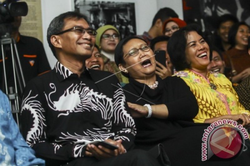 Menteri Luar Negeri Retno LP Marsudi (tengah) didampingi Dirut Perum LKBN Antara Meidyatama Suryodiningrat (kiri) dan Dirjen Komunikasi dan Informasi Publik Kominfo Niken Widiastuti menghadiri acara HUT Ke-79 Kantor Berita Antara di Galeri Foto Jurnalistik Antara, Jakarta, Rabu (21/12). Acara tersebut selain dalam rangka perayaan berdirinya kantor berita Indonesia itu juga sekaligus menjadi momentum peluncuran logo sepuluh windu Kantor Berita Antara. ANTARA FOTO/Muhammad Adimaja