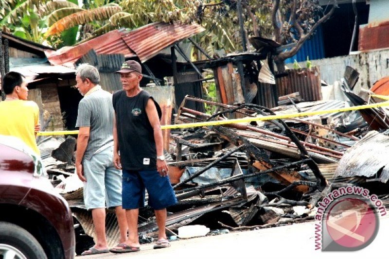 Lokasi sisa kebakaran yang terjadi pada Kamis dini hari (12/1/17) sekitar pukul 02.40 Wib di Jalan Tjilik Riwut Km 4 kota Palangka Raya, Kalimantan Tengah. Dalam kejadian tersebut, mengakibatkan tiga warung dan satu orang meninggal dunia. Foto Antara Kalteng/Ronny NT