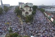 Ribuan umat Islam melaksanakan Salat Id di kawasan Jatinegara, Jakarta, Jumat (15/6). Pemerintah menetapkan Hari Raya Idulfitri 1 Syawal 1439 pada hari ini Jumat (15/6). ANTARA FOTO/Hafidz Mubarak A