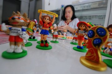Perajin membuat patung clay bertema Piala Dunia 2018 di Salatiga, Jawa Tengah, Senin (2/7). Berbagai jenis patung clay bentuk maskot dan suporter Piala Dunia 2018 yang terbuat dari bahan dasar tepung itu dijual dari harga Rp35.000 hingga Rp50.000 per patung untuk memenuhi permintaan pasar daerah Yogyakarta, Jakarta dan Surabaya. ANTARA FOTO/Aloysius Jarot Nugroho