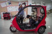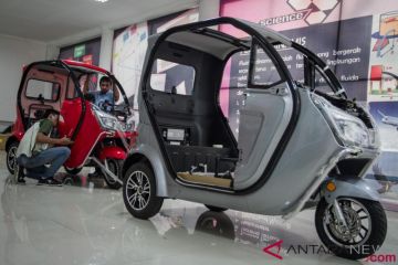 Teknisi menyelesaikan proses perakitan motor listrik Aglis buatan Solo Electric Vehicle Indonesia (Sevi) di Solo Technopark, Solo, Jawa Tengah, Kamis (29/11/2018). Sepeda motor listrik hasil fabrikasi teknisi Solo Technopark tersebut memiliki daya listrik 60V 1.000W tersebut mampu menempuh jarak hingga 60-80 km sesudah dicas selama delapan jam. ANTARA FOTO/Mohammad Ayudha/hp.