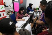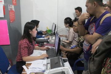 Petugas mengurus penjadwalan ulang jam penerbangan penumpang di counter maskapai Lion Air di Bandara Supadio, Kabupaten Kubu Raya, Kalbar, Sabtu (16/2/2019). Sebanyak delapan maskapai yaitu Lion Air, Garuda Indonesia, Air Asia, Sriwijaya, Citilink, Express Air, Nam Air dan Wings Air membatalkan 10 keberangkatan dan 9 kedatangan pesawat menyusul terjadinya kecelakaan pesawat Lion Air di landasan Bandara Supadio. (ANTARA FOTO/Jessica Helena Wuysang/ama).