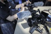 Pekerja menata kamera Sony Alpha 6400 saat peluncurannya di Jakarta, Jumat (15/3/2019). Kamera Sony Alpha 6400 merupakan kamera APS-C ringkas dan ringan yang memiliki berbagai teknologi tercanggih Sony dengan kecepatan Autofocus (AF) 0,02 detik tercepat di dunia, prosesor gambar BIONZ X generasi terbaru, video 4K serta layar sentuh yang dapat ditekuk 180 derajat sehingga kamera ini dapat menjadi alat mutakhir bagi para profesional, creator maupun vlogger. (ANTARA FOTO/Dhemas Reviyanto/pras).