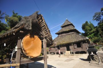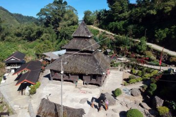 Warga beraktivitas di sekitar Masjid Kayu Jao, Kecamatan Gunung Talang, Kab.Solok, Sumatera Barat, Sabtu (11/5/2019). Masjid Kayu Jao ini tercatat sebagai masjid tertua kedua di Indonesia yang telah berdiri sejak tahun 1567 dan sekarang menjadi cagar budaya sekaligus objek wisata religi di provinsi itu. ANTARA FOTO/Iggoy el Fitra/hp.