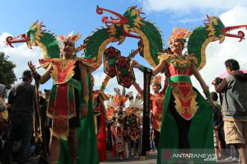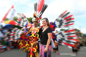 Sejumlah peserta Festival Budaya Isen Mulang (FBIM) yang diikuti oleh pemerintah kabupaten/kota se-Kalteng serta sejumlah instansi pemerintah dan pihak swasta di provinsi setempat, serta sejumlah paguyuban seni dari luar Provinsi Kalimantan Tengah, Selasa (18/6/2019). (Foto Antara Kalteng/Rendhik Andika)