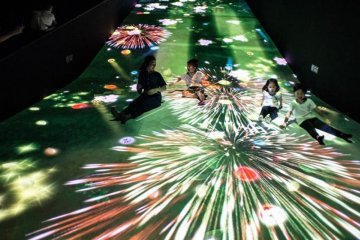 Pengunjung mengamati pameran seni interaktif bertajuk "teamLab Future Park and Animal of Flowers, Symbiotic Lives", di Gandaria City, Jakarta, Sabtu (22/6/2019). Pameran yang ditampilkan menggunakan teknologi digital yang mengusung konsep Kreasi Kolaborasi: Ko-Kreasi itu berlangsung hingga 20 Desember 2019. ANTARA FOTO/Aprillio Akbar/hp.