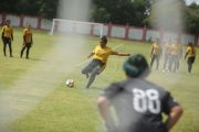 Sejumlah pesepak bola putri Kalteng mengikuti sesi latihan di stadion Tuah Pahoe, Palangka Raya, Kalimantan Tengah, Sabtu (18/7/2020). Tim sepak bola Kalteng Putri yang berdomisili di daerah tersebut tetap mengikuti latihan di tengah pandemi COVID-19 guna menjaga kondisi stamina mereka dalam persiapan PON Papua 2021. ANTARA FOTO/Makna Zaezar/hp.
