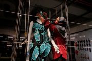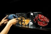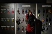 Petugas menata karya yang dipamerkan saat acara Pameran Masker Indonesia di Galeria Mall, Yogyakarta, Selasa (3/11/2020). Pameran yang menampilkan masker 3 lapis dengan berbagai model serta bahan karya dari puluhan desainer dan UMKM itu berlangsung hingga Januari 2021. ANTARA FOTO/Andreas Fitri Atmoko/hp.
