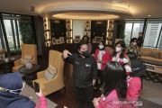 Menteri BUMN Erick Thohir menunjukkan ruang kerja kepada peserta program Girls Take Over di Kementerian BUMN, Jakarta, Senin (27/9/2021). Program Girls Take Over telah memilih enam perempuan muda dari seluruh Indonesia yang akan menjadi Menteri BUMN dan lima direktur utama BUMN dalam satu hari yang merupakan bagian dalam transformasi human capital BUMN guna mendorong peningkatan kepemimpinan muda dan perempuan. ANTARA FOTO/Dhemas Reviyanto/hp.