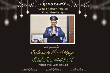 Kepala Kantor Imigrasi Palangka Raya Ujang Cahya mengucapkan Selamat Hari Raya Idul Fitri 1443 H Minal Aidin Wal Faidzin Mohon Maaf Lahir & Batin
