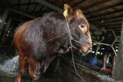 Peternak menunjukkan sapi yang dibeli Presiden Joko Widodo untuk dikurbankan pada Idul Adha di Kalteng, Palangka Raya, Kalimantan Tengah, Kamis (7/7/2022). Presiden membeli sapi jenis limosin seberat 1,1 ton untuk disembelih pada Hari Raya Idul Adha 1443 H mendatang di Masjid Jami Assalam Sampit Kabupaten Kotawaringan Timur Kalteng. ANTARA FOTO/Makna Zaezar/rwa.
