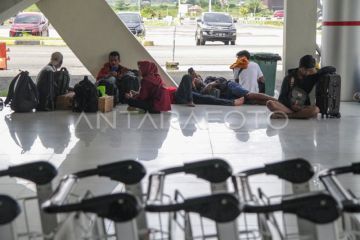 ANTARA - Calon penumpang berpamitan dengan keluarganya sebelum berangkat menunju kampung halamannya di Bandara Tjilik Riwut, Palangka Raya, Kalimantan Tengah, Minggu (16/4/2023). PT Angkasa Pura II (Persero) Cabang Bandara Tjilik Riwut mencatat memasuki H-6 Lebaran, sebanyak 8.567 orang pemudik yang datang maupun berangkat telah melintas di bandara tersebut serta diprediksi akan terus mengalami peningkatan penumpang pada puncak arus mudik mendatang. ANTARA FOTO/Makna Zaezar/YU