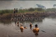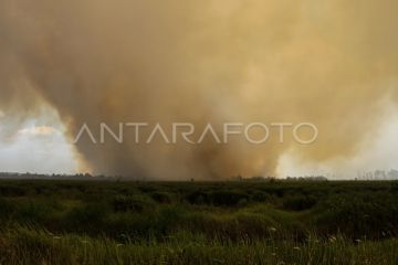 Asap membumbung tinggi dari kebakaran hutan dan lahan di Kelurahan Petuk Katimpun, Palangka Raya, Selasa (29/8/2023). Petugas gabungan masih terus berupaya memadamkan kebakaran hutan dan lahan yang terjadi di daerah tersebut. ANTARA FOTO/Auliya Rahman/tom.