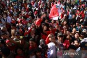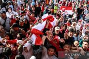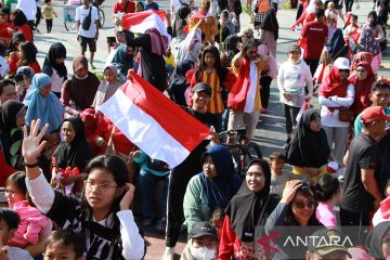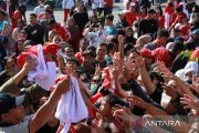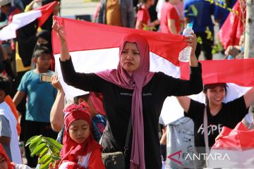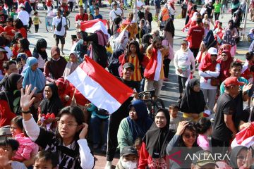 Sejumlah warga berebut bendera merah putih saat Gerakan Pembagian Bendera Merah Putih di Bundaran Besar, Palangka Raya, Kalimantan Tengah, Minggu (28/7/2024). Pemerintah Provinsi Kalimantan Tengah membagikan sebanyak 49.100 bendera merah putih kepada warga dan mengimbau untuk memasang bendera tersebut mulai tanggal 1 hingga 31 Agustus 2024 dalam rangka menyabut peringatan HUT ke-79 Kemerdekaan RI. ANATARA FOTO/Auliya Rahman.