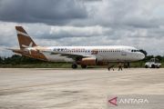 Pesawat udara maskapai Super Air Jet tujuan Kota Yogyakarta saat penerbangan perdana Palangka Raya-Yogyakarta di Bandar Udara Tjilik Riwut, Palangka Raya, Kalimantan Tengah, Jumat (22/11/2024). Maskapai Super Air Jet (Airbus A320) membuka rute penerbangan baru Palangka Raya-Yogyakarta dan sebaliknya, beroperasi setiap hari Senin, Rabu, Jumat, serta Minggu dengan harga tiket melalui online sekitar Rp1,1 juta - Rp1,2 juta diharapkan dapat meningkatkan kunjungan wisatawan dan pertumbuhan ekonomi. ANTARA FOTO/Auliya Rahman.