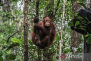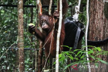 Menteri Kehutanan Raja Juli Antoni meresmikan tempat sekolah Orang Utan di kawasan Rehabilitasi dan Konservasi Nyaru Menteng, Palangka Raya, Kalimantan Tengah, Kamis (20/3/2025). Dalam kunjungan tersebut, Menhut meresmikan sekolah Orang Utan Nyaru Menteng milik Yayasan Borneo Orang Utan Survival Foundation (BOSF) yang merupakan tempat sekolah bagi anak-anak Orang Utan sebelum dilepasliarkan ke habitatnya. ANTARA FOTO/Auliya Rahman/rwa.