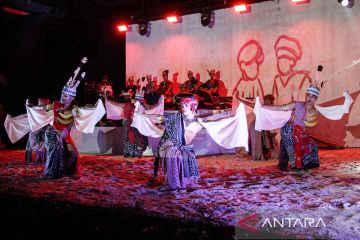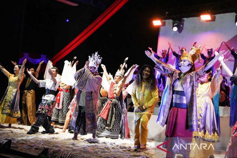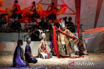 Penari menampilkan sendratari Hikayat Kutaringin di UPT Taman Budaya Kalimantan Tengah, Palangka Raya, Jumat (22/8/2025). Pertunjukan sendratari Hikayat Kutaringin fragmen Panti Darah Janji Samaya tersebut menceritakan tentang sejarah berdirinya Kesultanan Kutaringin dan raja pertamanya merupakan Pangeran Antakesuma. ANTARA FOTO/Auliya Rahman/YU